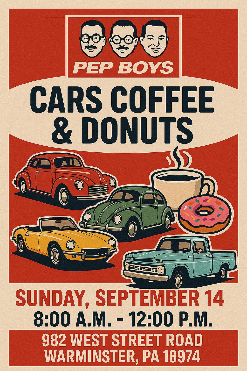 Join us for our next Cars, Coffee & Donuts event hosted by Pep Boys!