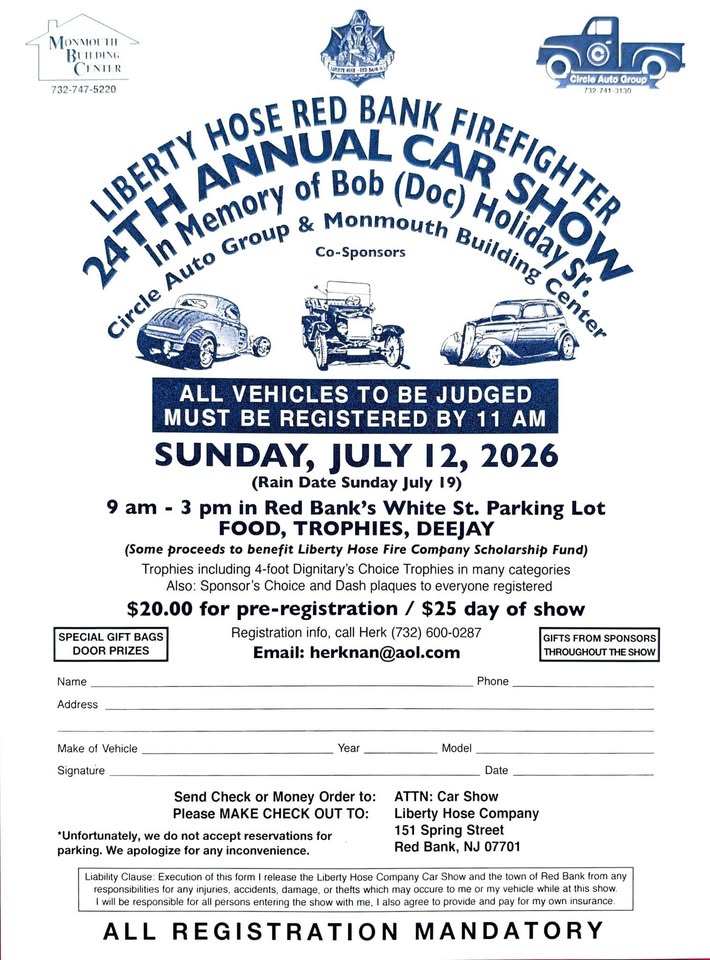Liberty Hose Co #2 RBVFD is proud to present the 24th annual edition of their wildly popular car show in the White Street parking lot in Red Bank, NJ.