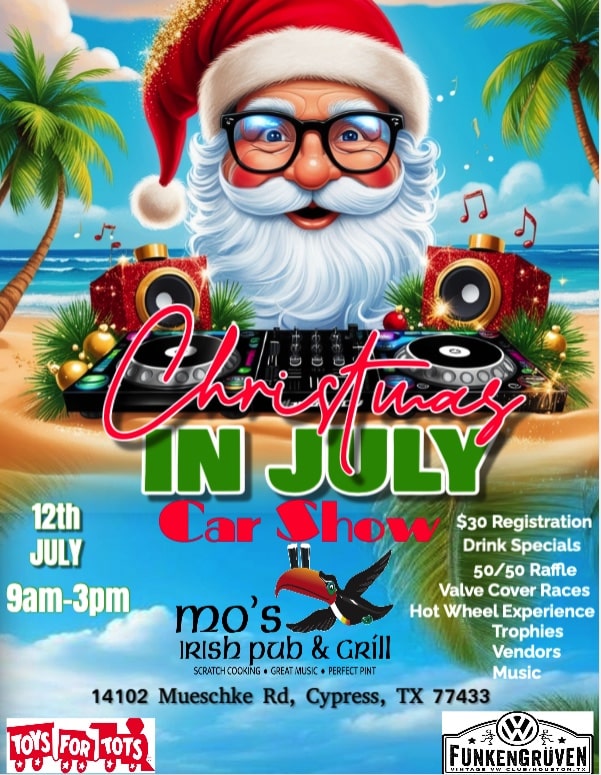 Summer Santa photo op-Music by DJ-50/50 raffle-Awards-Drink & food specials