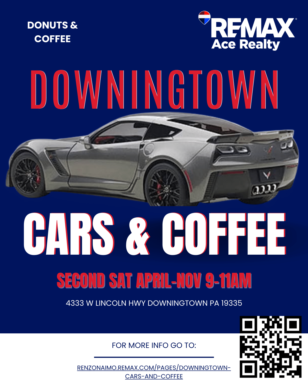 Dear Car Enthusiasts, looking for fun things to do in Downingtown on a Saturday morning? Join us for our annual Downingtown Cars & Coffee — a free monthly car meet at RE/MAX Ace Realty.