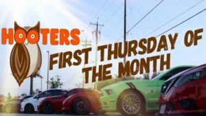 Enjoy dinner on the awesome Hooters Patio with an amazing view of some sweet rides!!