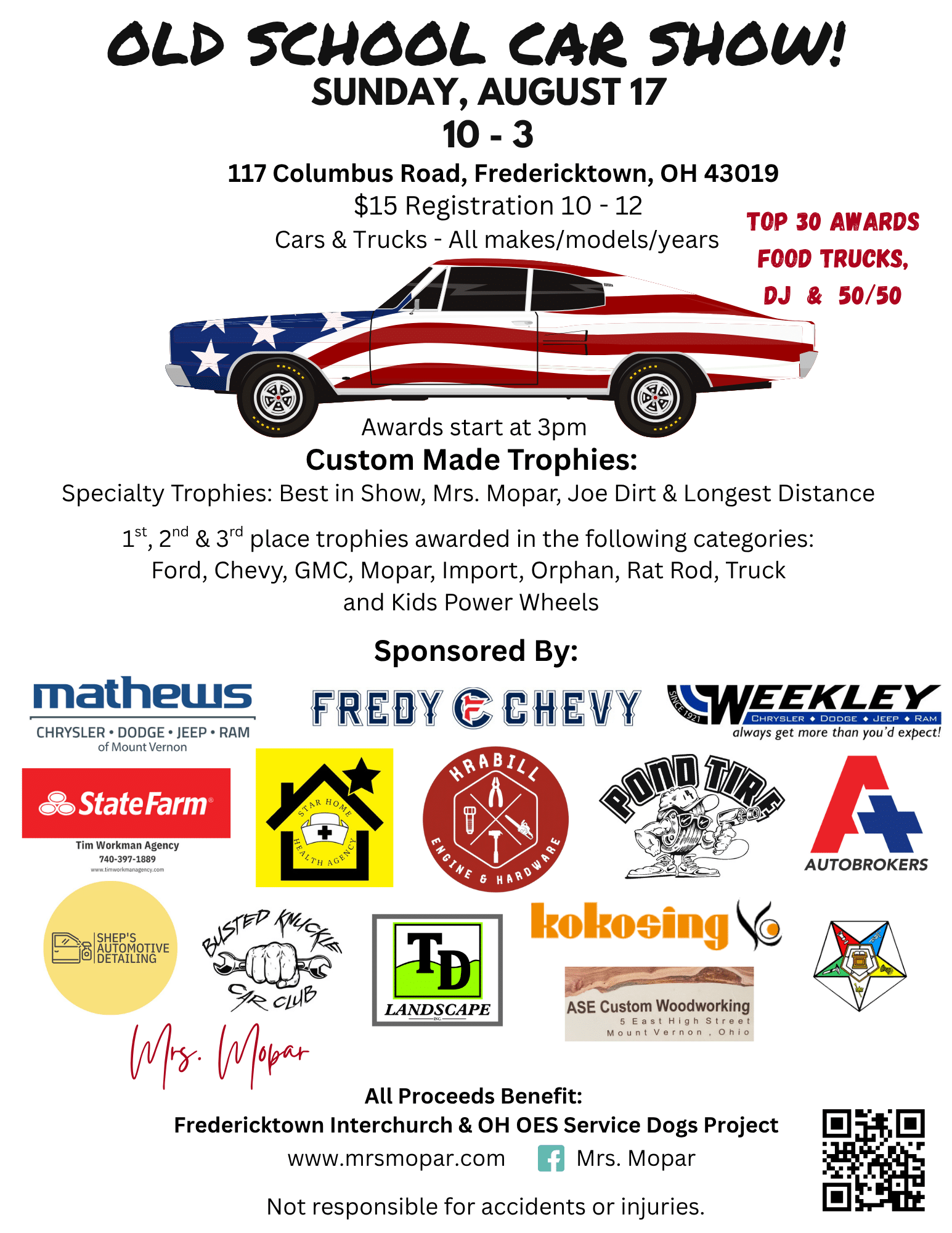 Benefiting Fredericktown Interchurch and the OH OES Service Dogs Project.