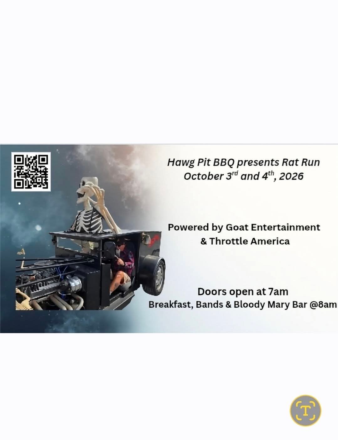 The legendary Hawg Pit BBQ is hosting a Breakfast, Bloody Mary Bar, and Bands all weekend. Pre party starts Friday at 11am. Doors open at 7am Sat and Sun.