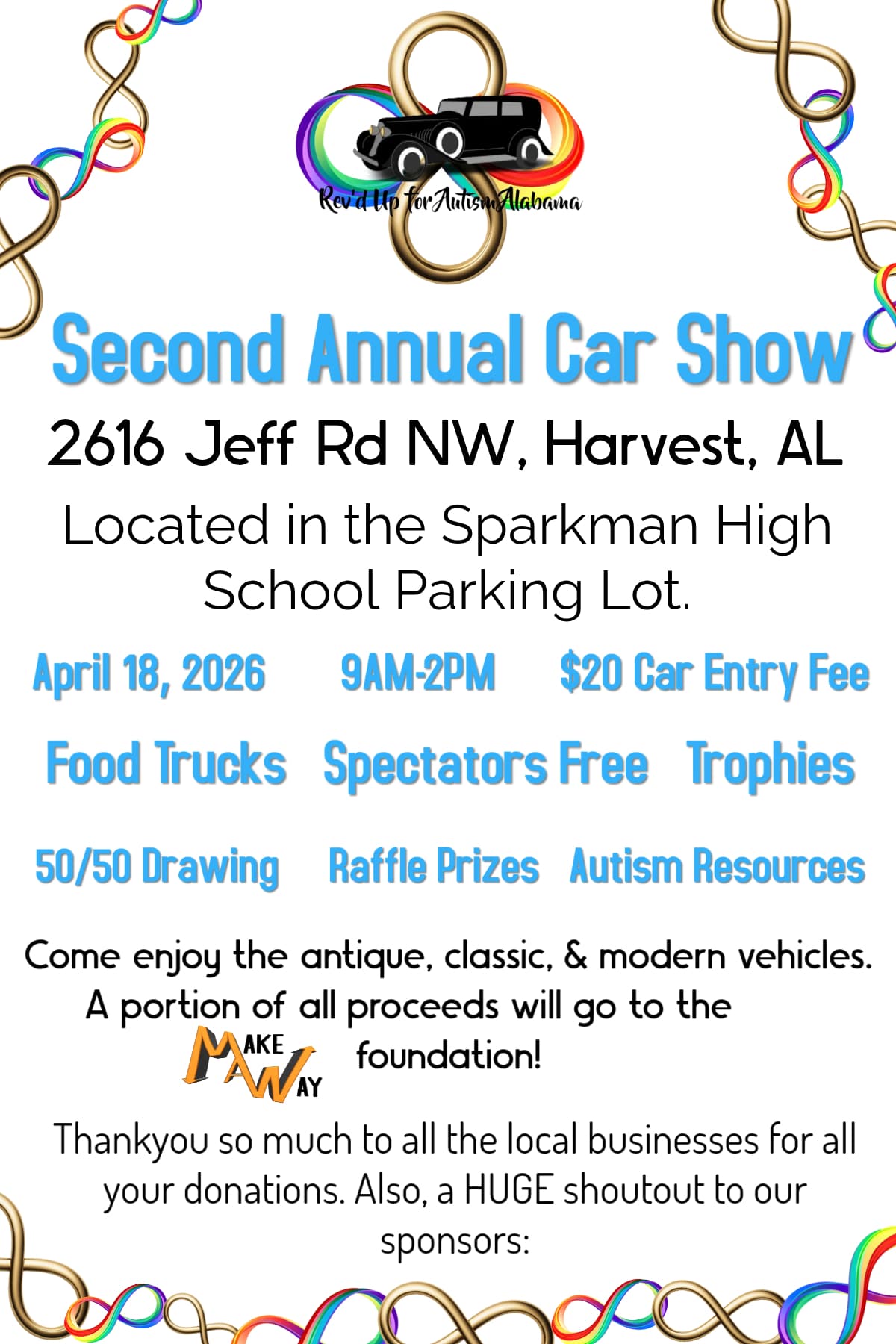 Throughout the event, you’ll find delicious food trucks and valuable autism resources available on-site. Best of all, we’re coming together to raise funds for the Make A Way Foundation and support their amazing work.