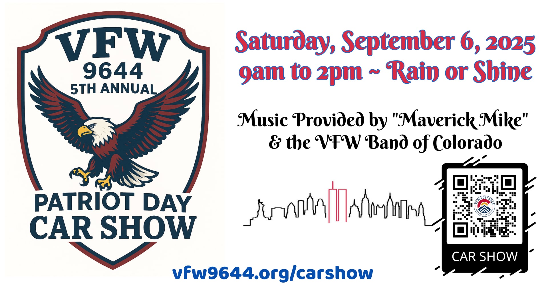 Join us for our highly anticipated car show, now in its fifth year, at VFW Post 9644 in Sheridan, Colorado, coinciding with Patriot Day. This year, we’re revving up for an unforgettable event dedicated to supporting veterans.