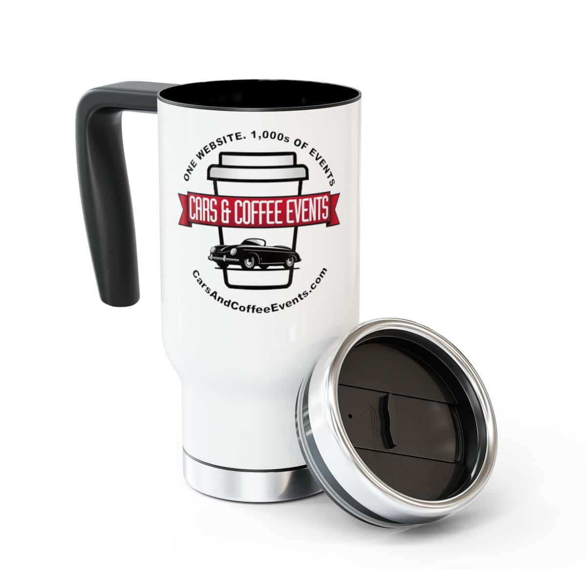 Take to the great outdoors with your favorite beverage in hand, all thanks to our custom stainless steel travel mugs. Each mug holds 14 oz. of your favorite beverage and is made with adventure-friendly stainless steel. With a glossy white enamel finish, a spill-resistant and snap-on cap, as well as a lined-in insulating plastic, this mug combines character with an explorer’s favorite; practicality.